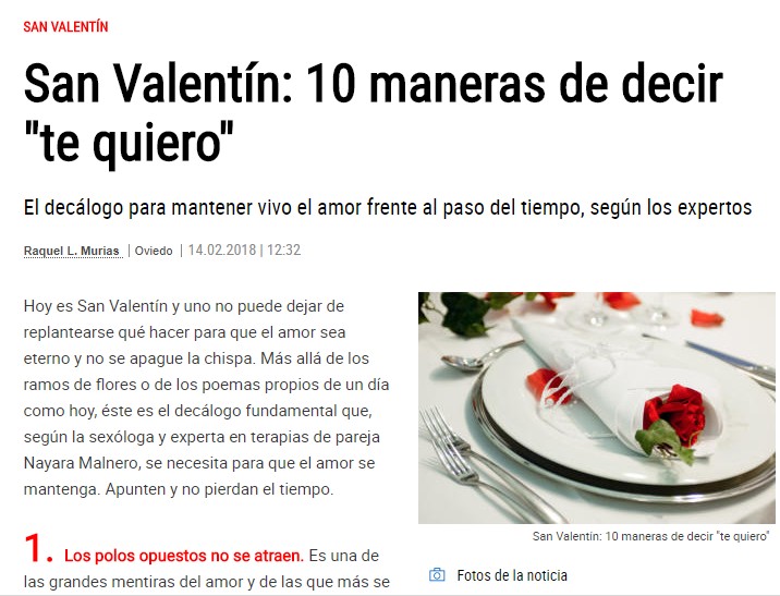 Desde La Nueva España me preguntaron por San Valentín 10 claves para que una relación funcione o para «decir te quiero». Puedes entrar a verlas ahora ¡y aplicarlas!